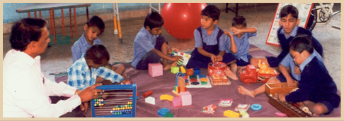 school. Jyotsna also had fascination for learning. However, other children annoyed her in that school. So her mother, Mrs. Vasanti Khandagale, decided to take the responsibility of teaching her daughter. At the same time she thought that she could teach other children similarly affected. When she began on 2nd Jan.1978, she had only two students. Such was the beginning of a school which later flourished. The school was registered in 1981 and got government recognition in 1985. The school has 60 students entitled at present & has a trained staff of 13 persons. Dr. Suchit Tamboli as Honarary Medical Officer visit the institution regularly & examine the student.